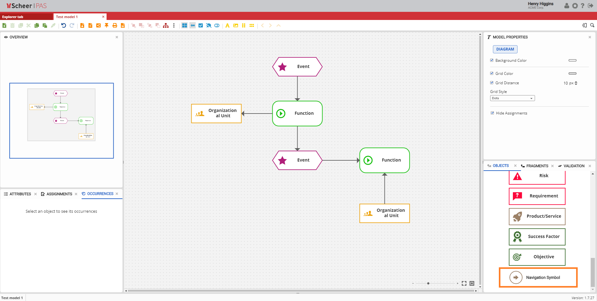 Click on Navigation symbol object on the Canvas and then in the Assignments panel select the option Link New Model or Link Existing Model.