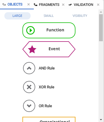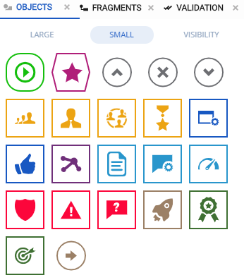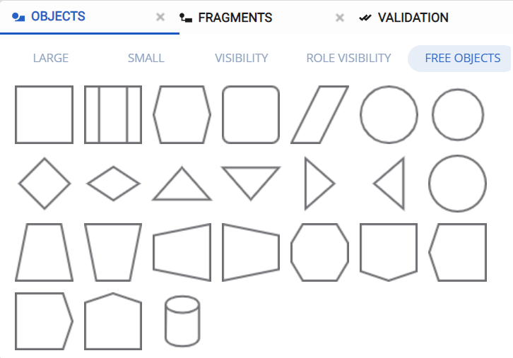 Small objects have the same symbol as the corresponding large objects. They are reduced in shape only on the panel, when pulled out on the canvas they become full size objects.