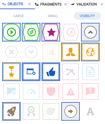 You can turn on / off the visibility of certain types of objects on the Canvas by clicking on the objects inside this panel.