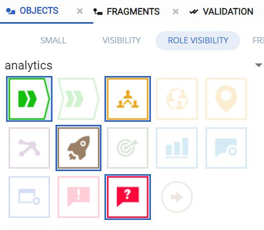 By selecting a role and clicking on the object inside this panel, you can turn on/off the visibility of the selected object type for the selected role.