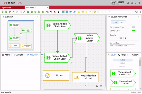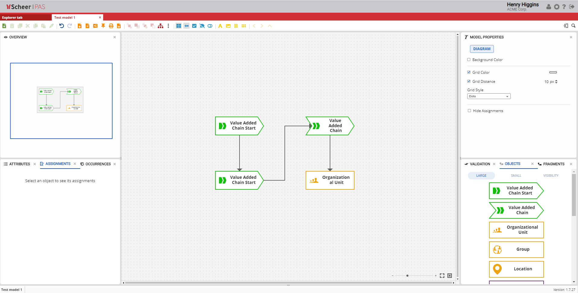 The Overview panel gives you the option to navigate to specific sections of the model.