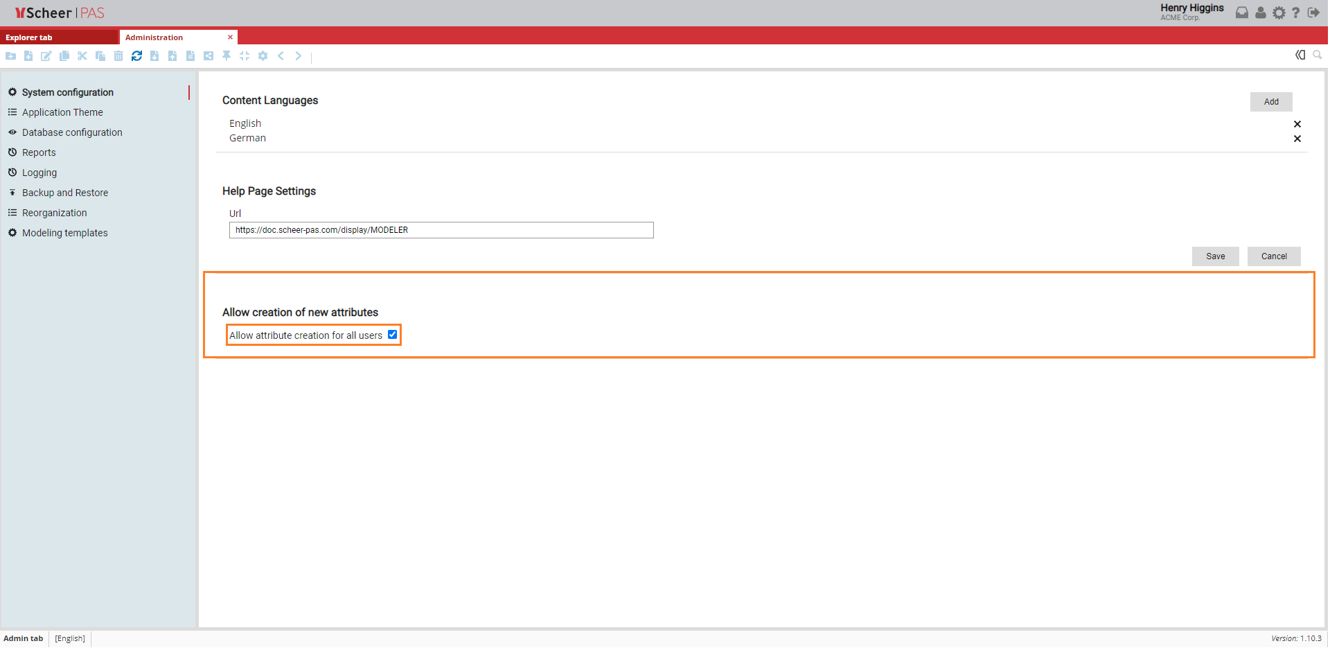 Here you will find Help Page Settings, and you can also Allow attribute creation for all users.