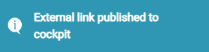 ![]() | ![]() | The Publish to cockpit option is available for databases, folders or models. Use it to pin the selected item to a cockpit. When you click on the button, a message appears on the top left corner of the screen showing the message External link published to cockpit. |