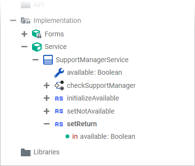 You can delete a parameter in the implementation folder of the service panel using the Delete option of the context menu or the Del key:
