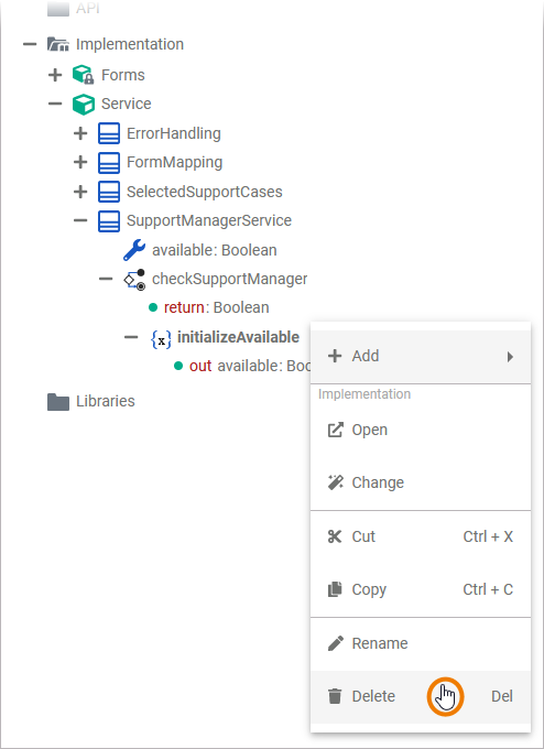 To delete an operation, open its context menu and select Delete:
