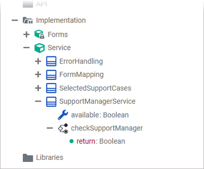 Example: The Action Script initializeAvailable is created as a suboperation to checkSupportManager: