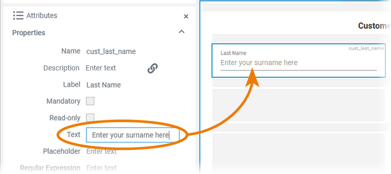 If content is added to both attributes Text and Placeholder, the content of Text is displayed in the element.