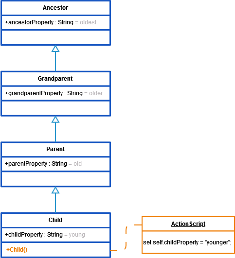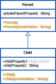In the example above, both classes Parent and Child contain two custom constructors each (operations marked with orange).