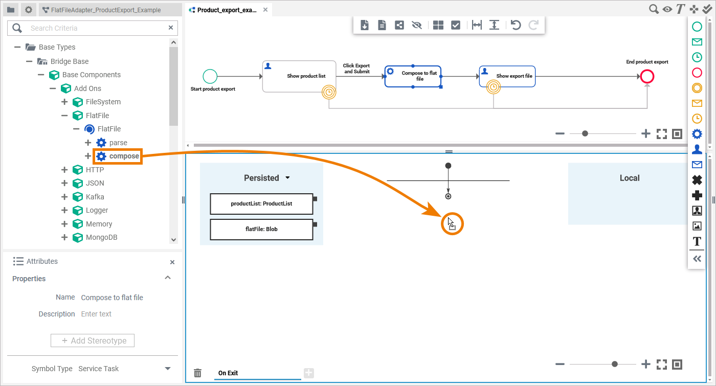 Expand the path to the Flat File adapter in the service panel (Base Types/Bridge Base/Base Components/Add Ons/FlatFile):