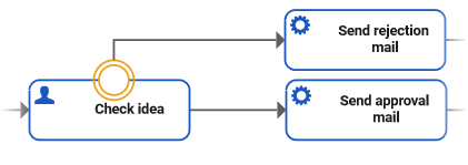 If the CEO uses button Reject in the form, a rejection mail should be sent. This is the additional process flow, the process continues from the boundary event.