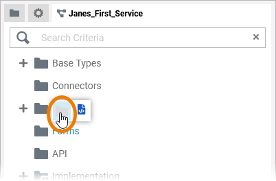 In the Forms folder you can create new forms the user will have to fill during the execution of your application. If you create a new service in the Explorer, it automatically contains a Forms folder in the service panel.