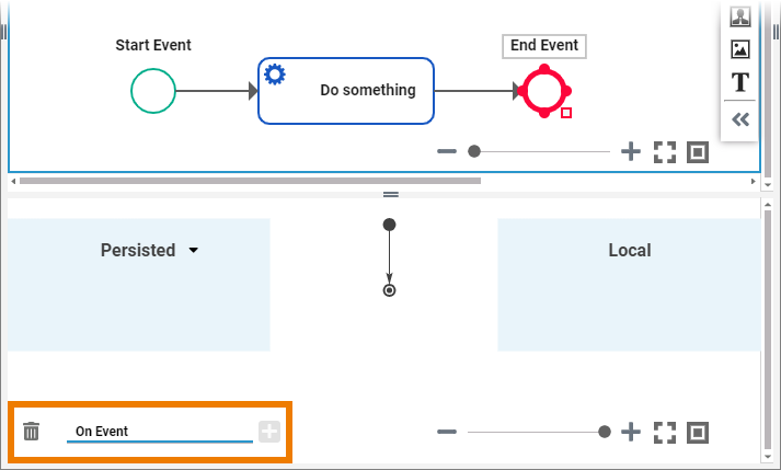 When the end state of the BPMN is reached, the meta state Done of the root machine is reached.