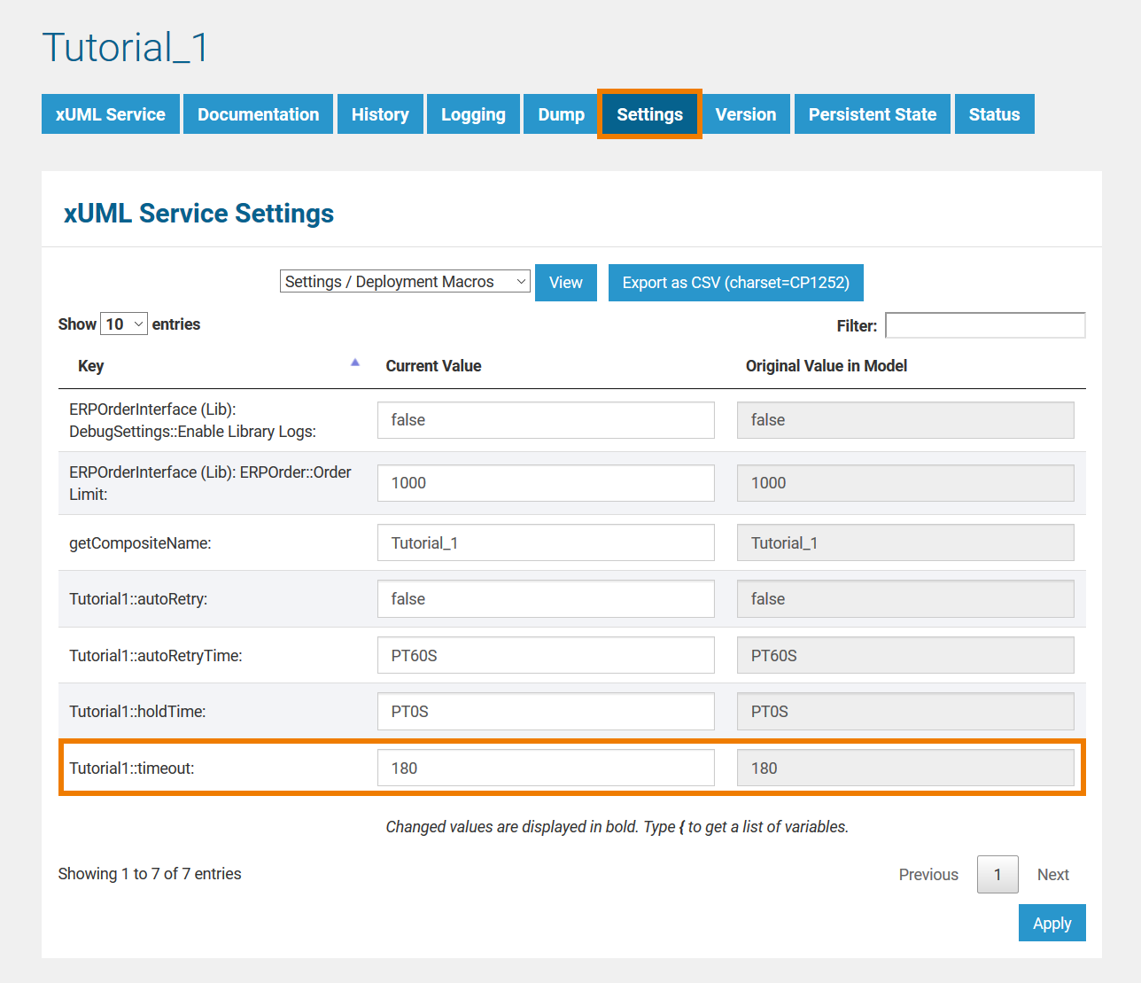 Refer to xUML Service Settings in the Integration (Bridge) User's Guide to know more about xUML service settings in general and how you can change them.