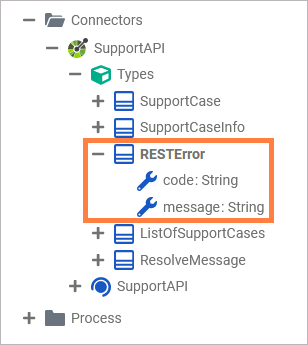 The type definition of this error object has been imported with importing the OpenAPI file of the REST service and can be found in the imported module. In this example, this is RESTError: