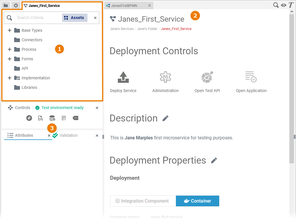 Process | ![]() | Use the Process folder to create and manage the BPMN models for your service. | |