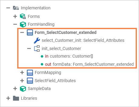 This operation must have exactly one output parameter having the type of the owning class. An example for that is operation init_select_Customer , having the output parameter formData of type Form_SelectCustomer_extended .