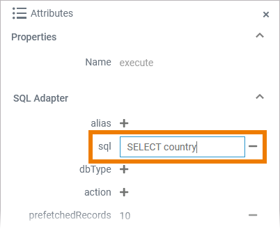 See further information below and on page SQL Adapter Reference. The adapter option action derives from the used operation. Do not configure this.