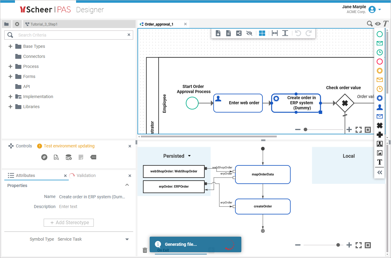 Refer to Error Handling Validation for an overview on validation panel messages. In the Designer Guide, you find further information about the usage of the validation panel on page Validating a Service.
