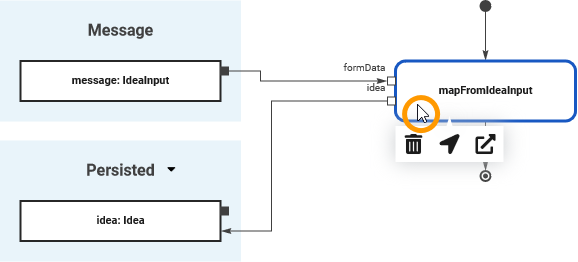 In the second step, select data types and operations from the Service panel, and add them to your process at the right places.
