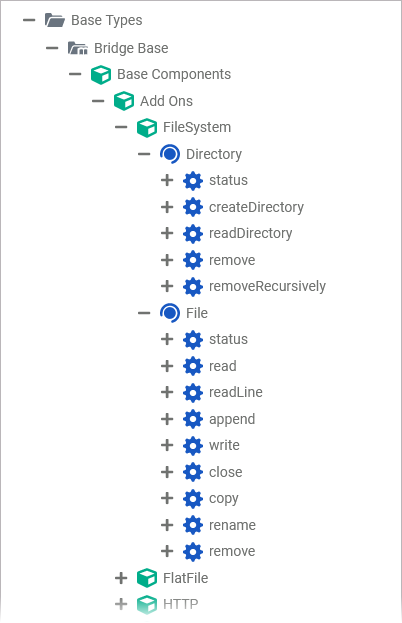 Expand the path to the Filesystem adapter in the service panel (Base Types/Bridge Base/Base Components/Add Ons/FileSystem):