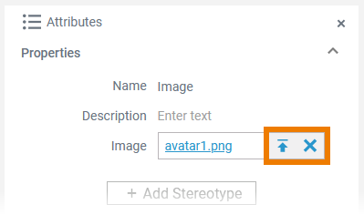 Use the attribute Image in the Attributes Panel to upload a picture into the empty frame or insert a link to an existing picture: