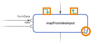 When you hover over a custom operation, options for creating an input parameter and for creating an output parameter appear above the element:
