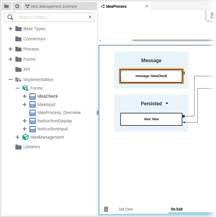 Example: The type of the selected class IdeaCheck is applied to the incoming message.
