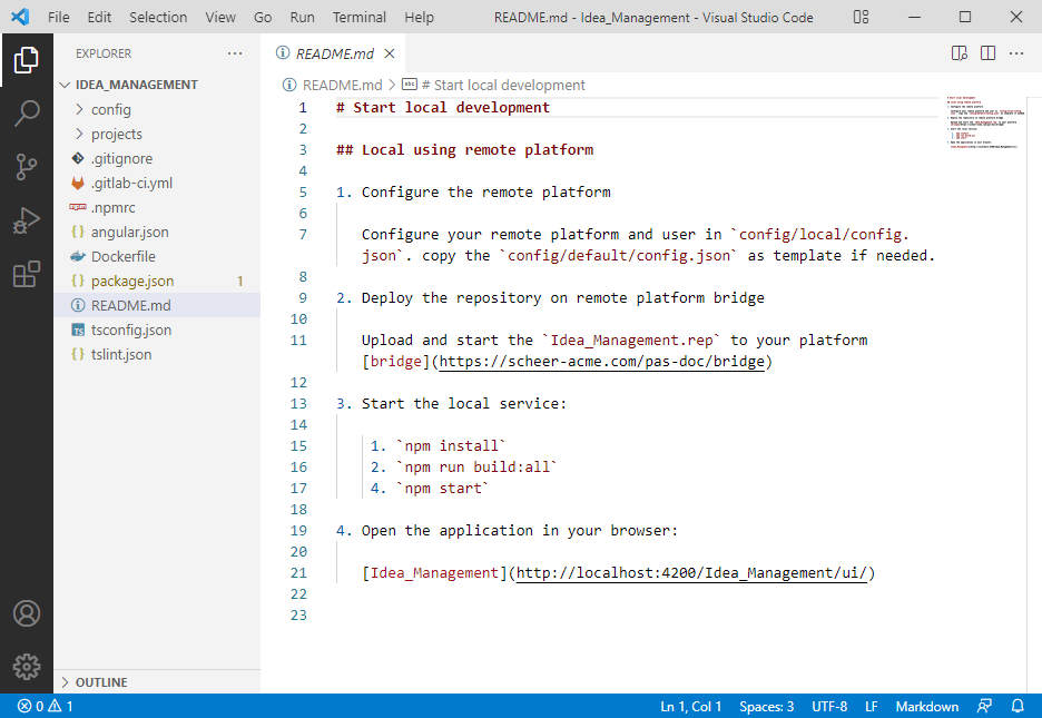 The README.md file describes how to configure the local project so that you can use it in combination with your Scheer PAS system: