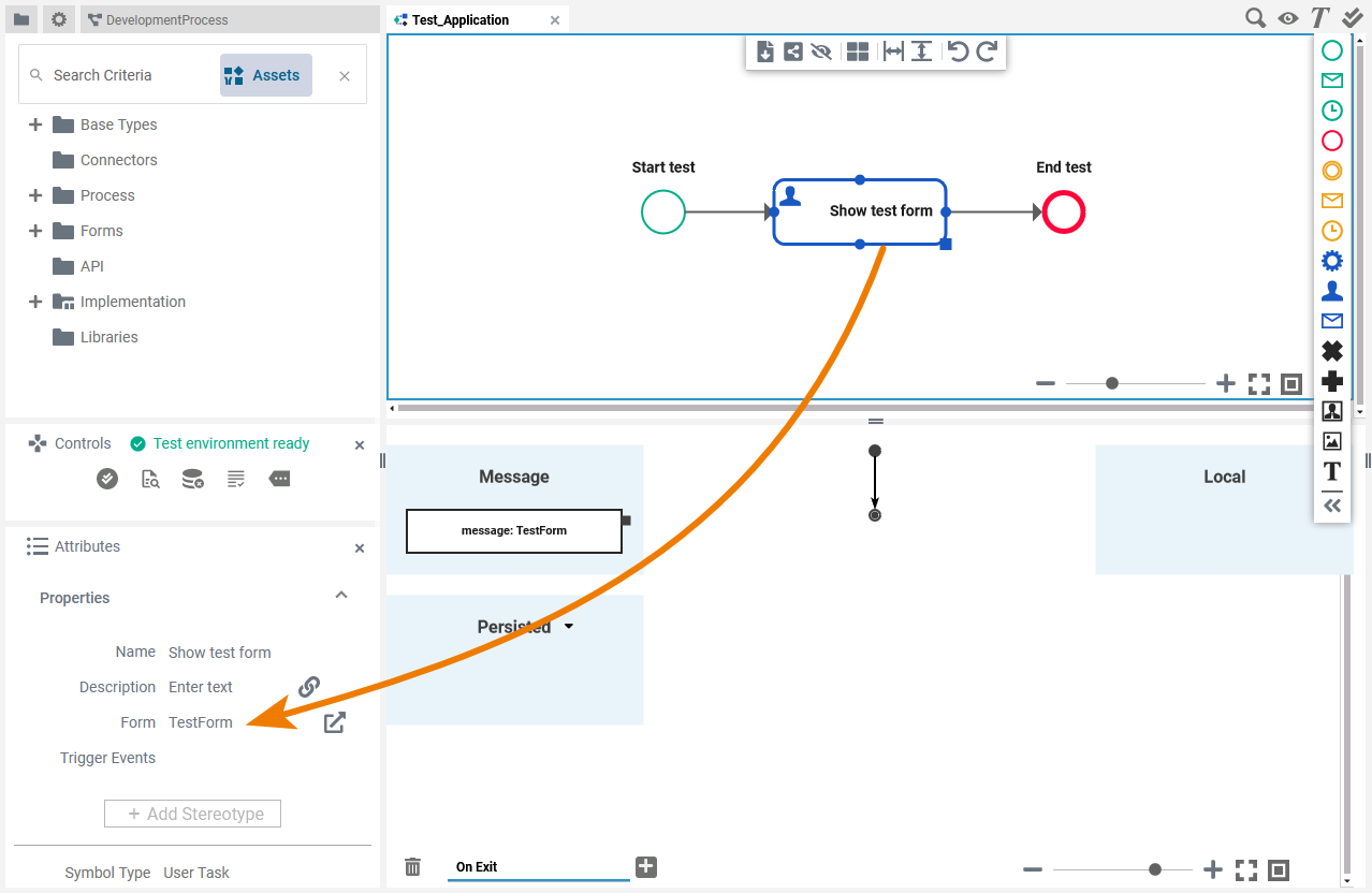 A developer created a simple test application, containing only a user task with an assigned test form: