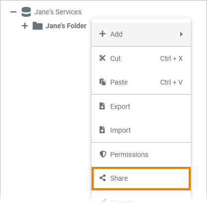 You can also share the link for a folder. Select Share from the context menu to copy the link of the folder to the clipboard:
