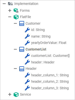 Have a look at the example flat file structure below. It represents a flat file with a header line and three columns, each of them referring to an attribute of Customer.