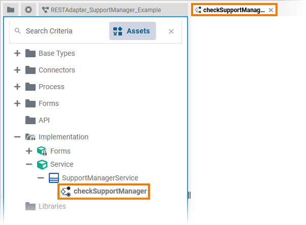 Type | Path within the implementation folder where the corresponding activity operation resides. | Service.SupportManagerService | |