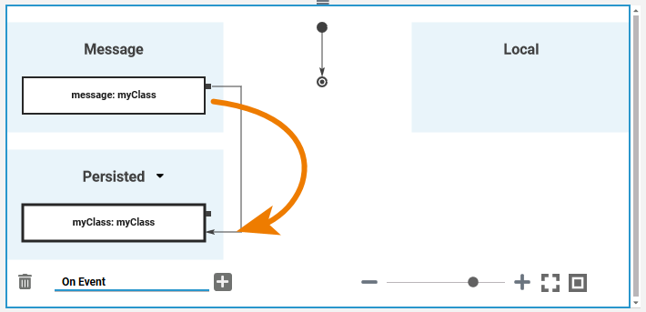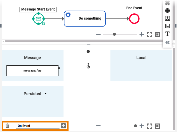 The execution model (On Event) for a message start event is created by default to process the message parameter: