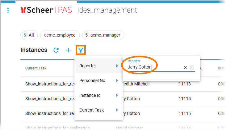 You can specify how the content of the instance list should look like. Refer to Configuring the Columns of the Instance List and Displaying Custom Data in the Instance List.