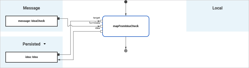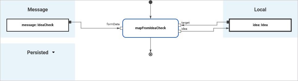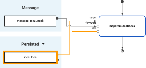 Example: The type of the selected class IdeaCheck is applied to the incoming message.