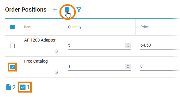 Selecting the checkbox in the header row selects all table rows. If you click Delete now, all selected rows are removed from the table: