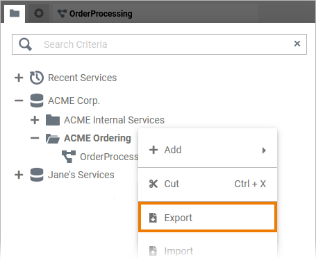 To exchange Designer content between systems or namespaces, or simply to create a copy of something, you can export and import the contents of the explorer tree. However, import and export are not equally allowed for all elements. The table below lists the available options for each element: