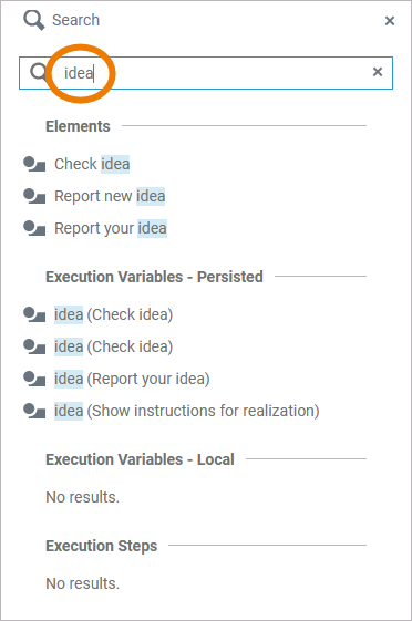 In the BPMN editor, click on a match in the list to focus the element in the BPMN diagram: