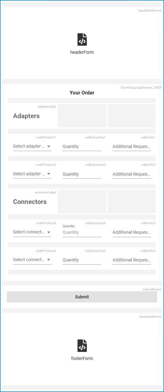 inputForm2 also gets two subform elements which are assigned to headerForm and footerForm: