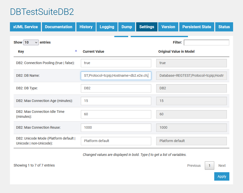 DB2INSTANCE | Name of the SQL service component that has to be used in the deployment diagram when defining a DB2 database backend, e.g. DB2. |