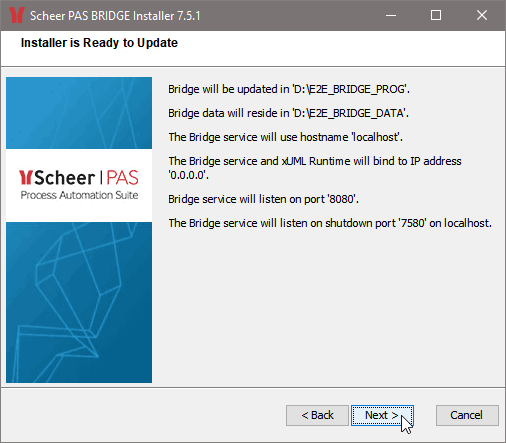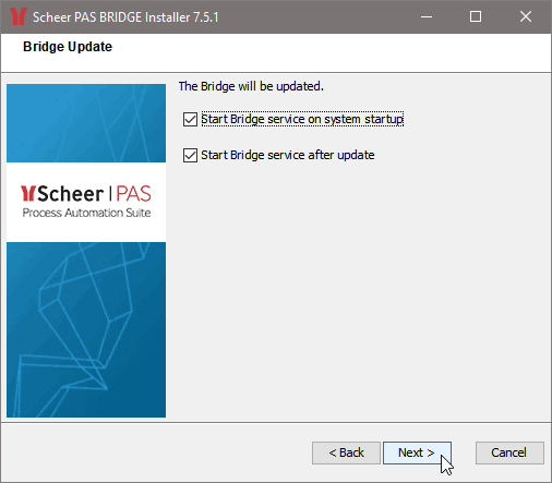 <path to your java installation>\java -jar BridgeInstaller-<...>-64-7.x.x.jarand proceed with Step 2: Going through the Update Process.