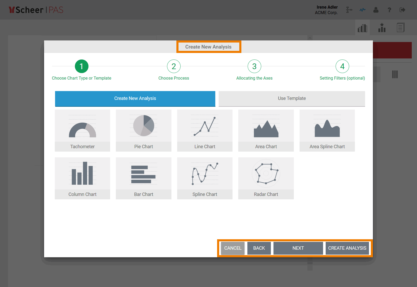 The Create New Analysis wizard opens in a separate window. Follow the wizard step by step through the configuration process.