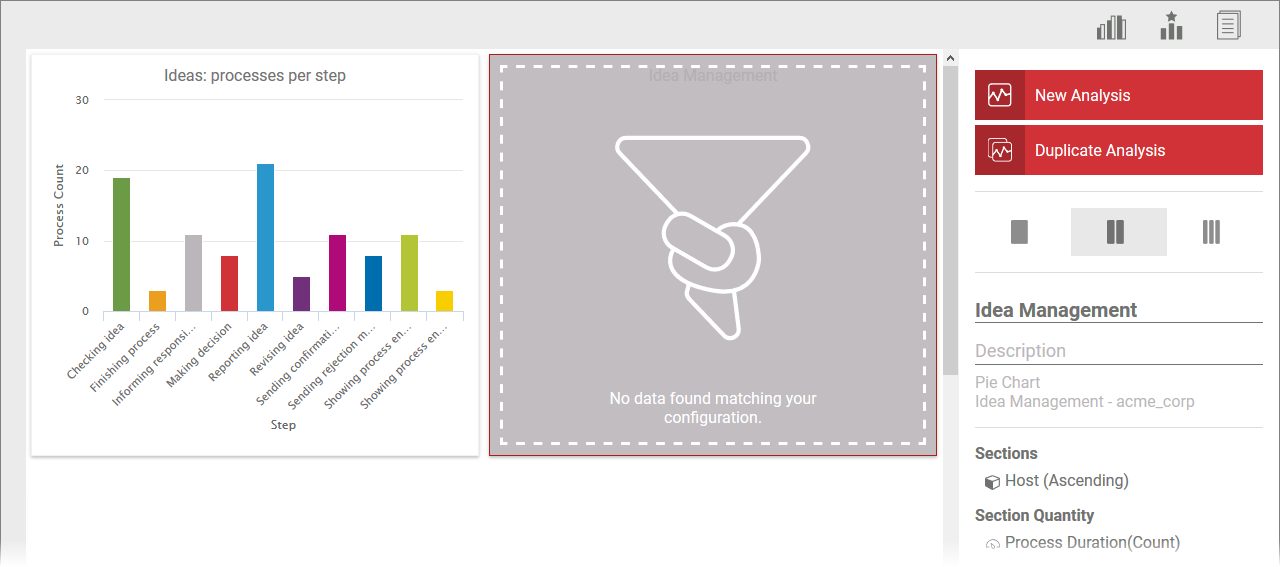 When you have created the filters you want, click Create Analysis to create the chart in the content area. The chart is created in the Process Analyzer. The analysis settings are shown in the sidebar.