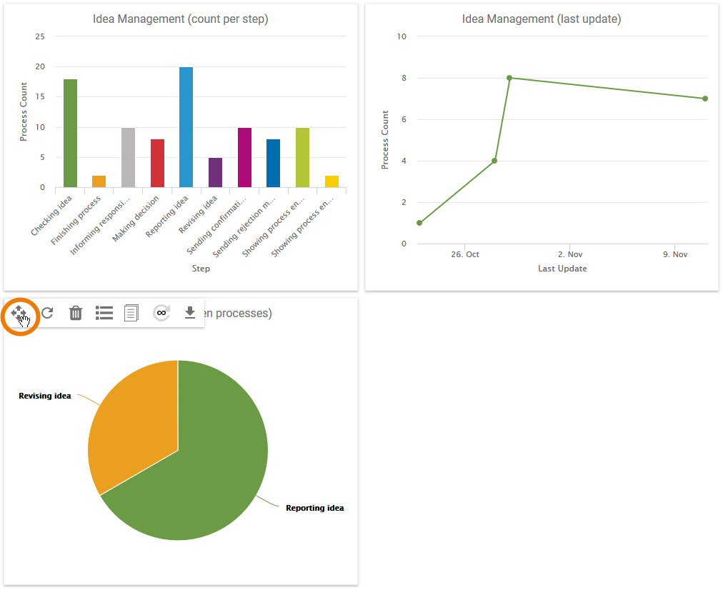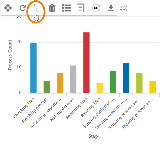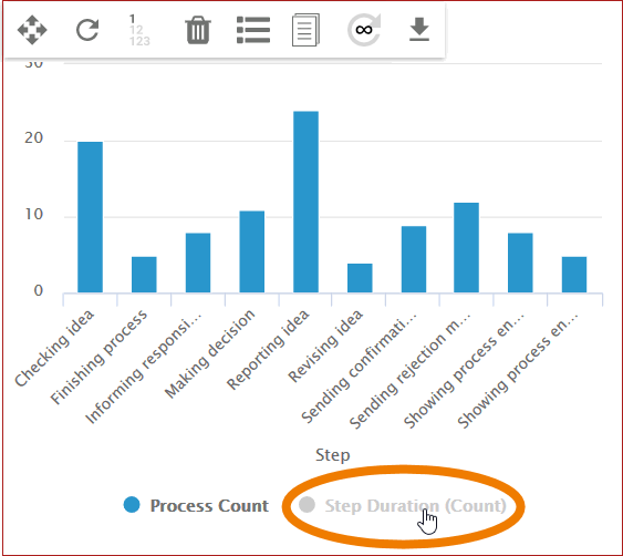 The charts managed in the Process Analyzer are interactive and offer a number of additional functions.