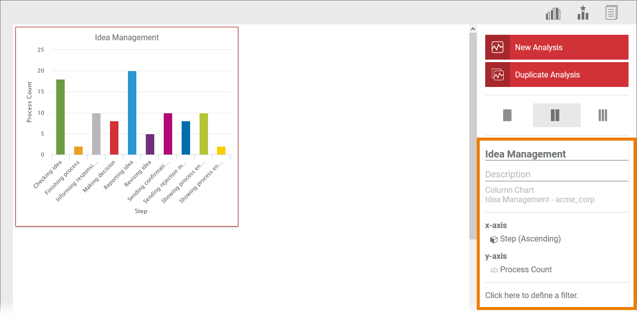 Once you have marked an analysis, you can also copy this analysis via the sidebar. To do this, drag the Duplicate Analysis link onto the user interface: