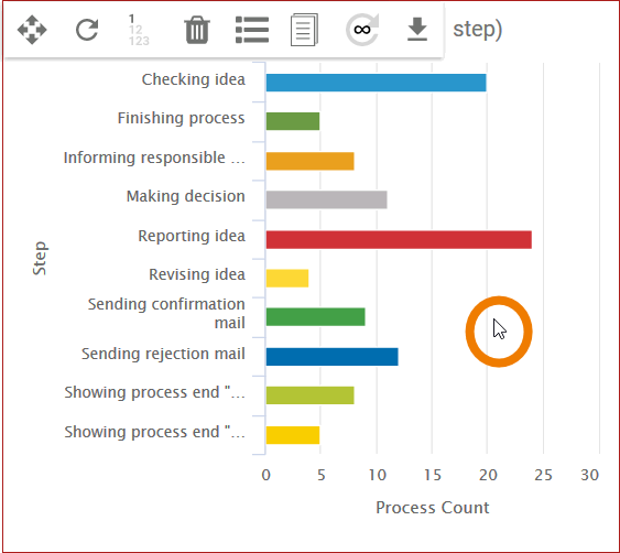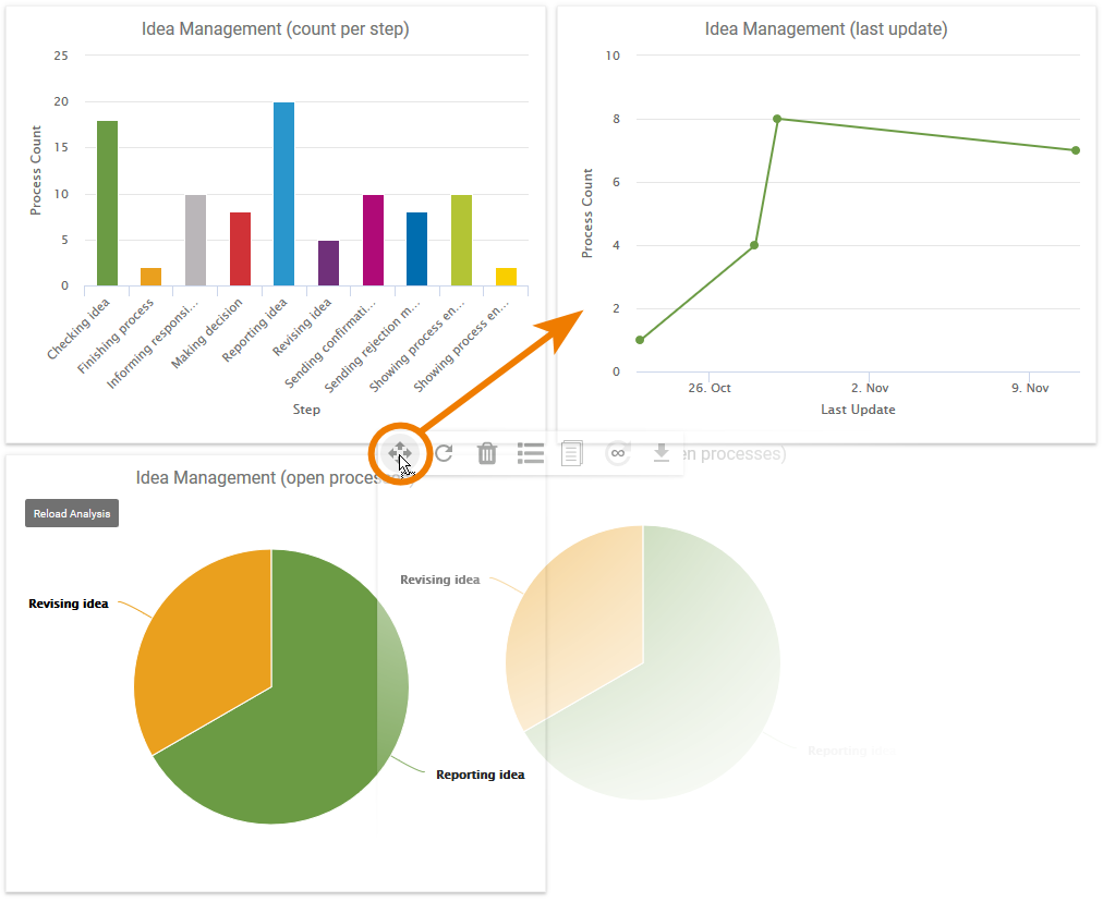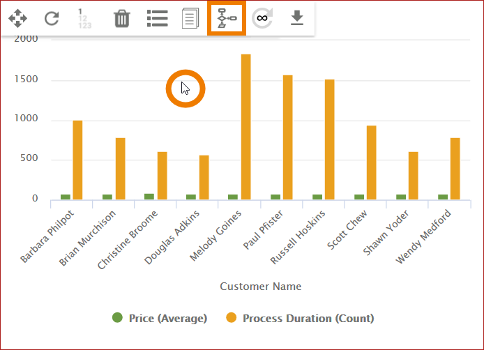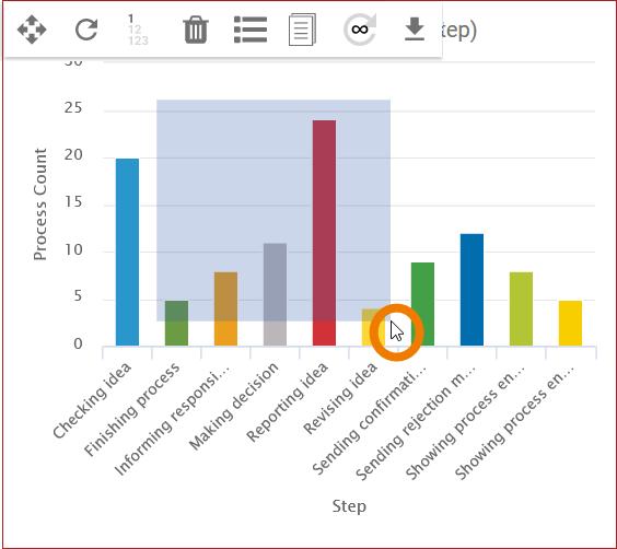 The charts managed in the Process Analyzer are interactive and offer a number of additional functions.