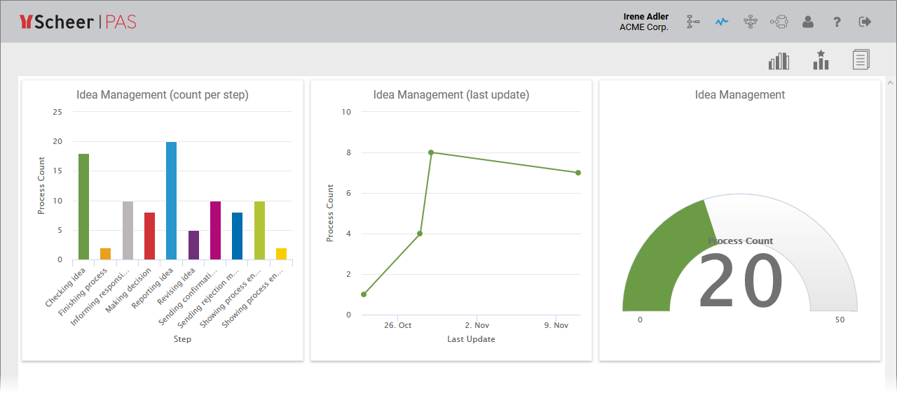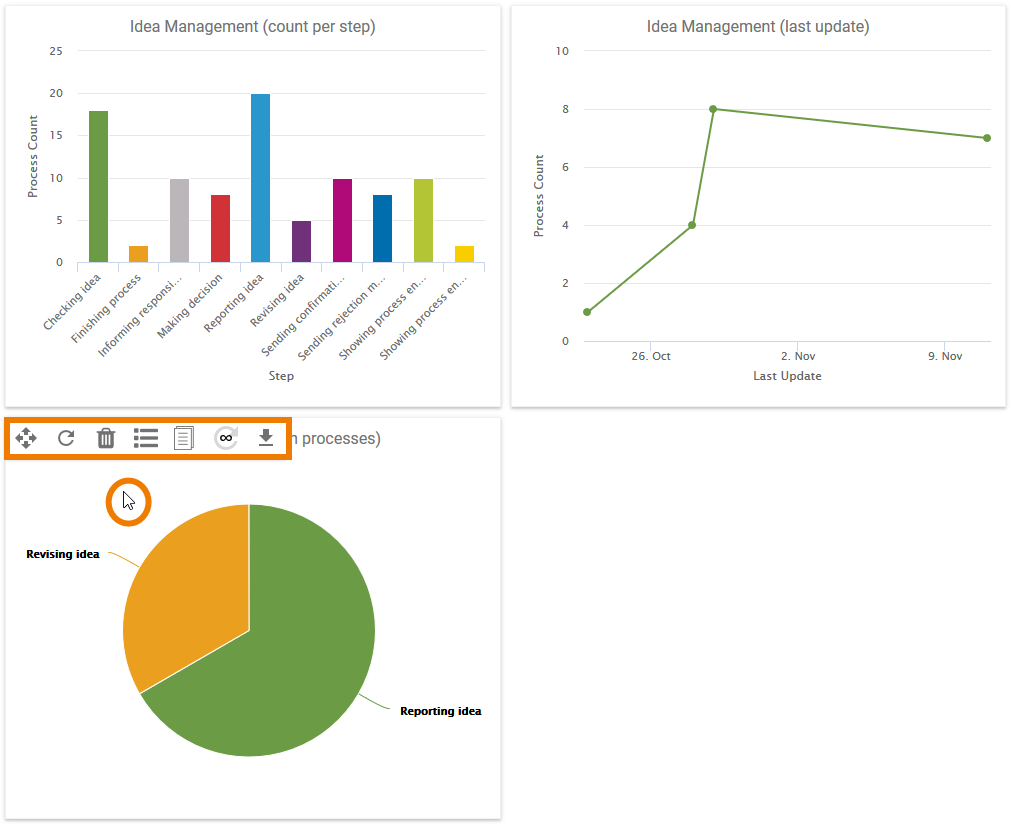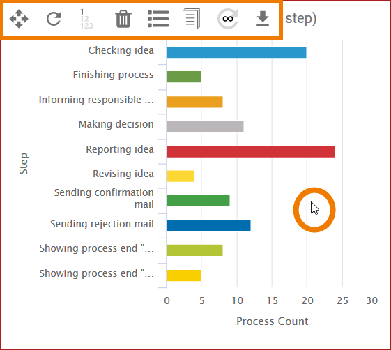 The charts managed in the Process Analyzer are interactive and offer a number of additional functions.