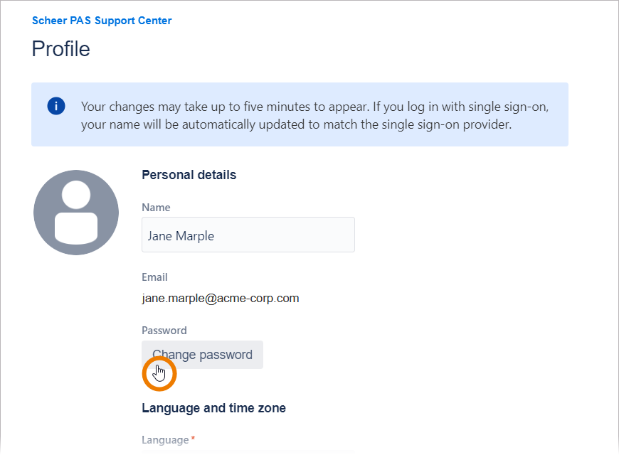 Click Change password in your profile data sheet: